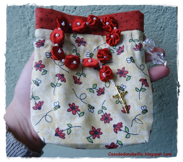 Gripe ninguem merece né keilla , o bom de ficar dodói é que podemos aproveitar para ser mimada pelo marido kkk olha achei lindo seus presentinhos o saquinho e o terço fiaram uma graça !! fora esse tecidinho lindo que amei demais.